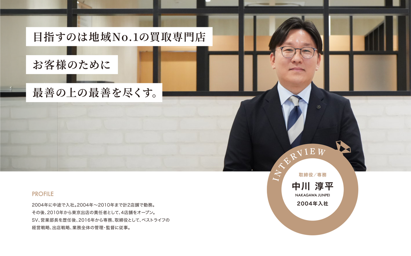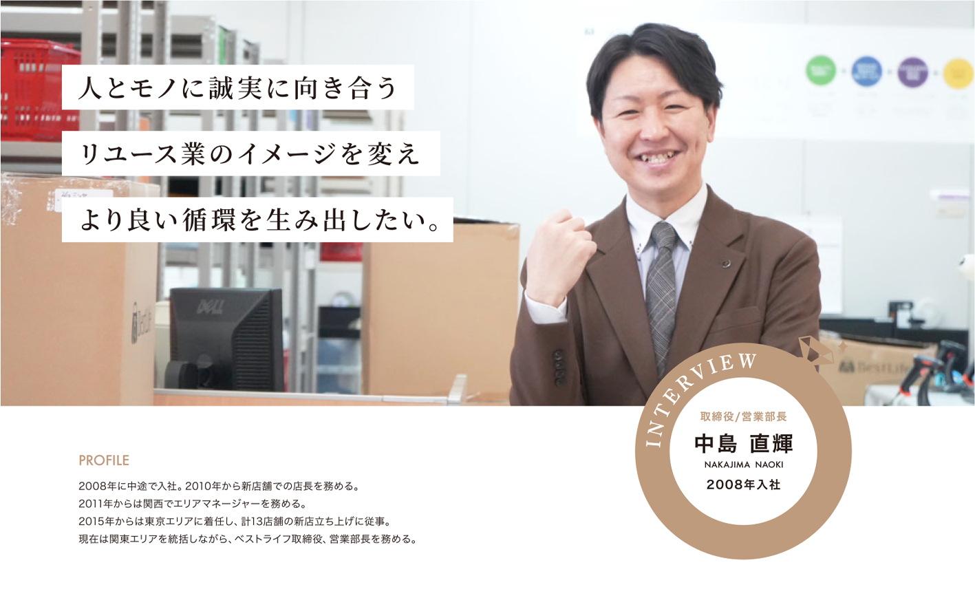 ベストライフの店長や鑑定士は、お客様とダイレクトに接することができる仕事です。自身の知識やスキルが向上し、お客様からの評価が高まるにつれて、お客様が増えて業績も上がります。個人の成長と会社の成長がリンクしているので、とてもやりがいがあります。