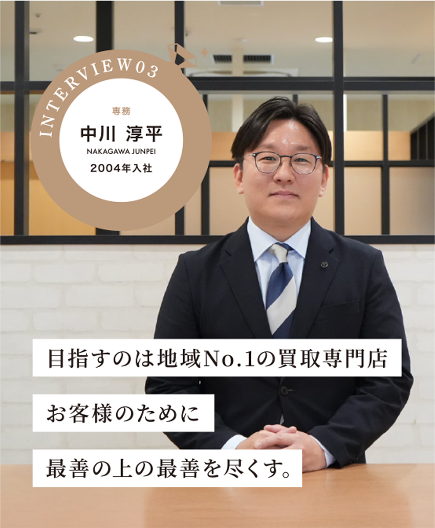 目指すのは地域No.1の買取専門店。お客様から「あそこに行けば間違いない」と言っていただけるよう、1店舗1店舗をしっかりつくっていきたいと思っています。
