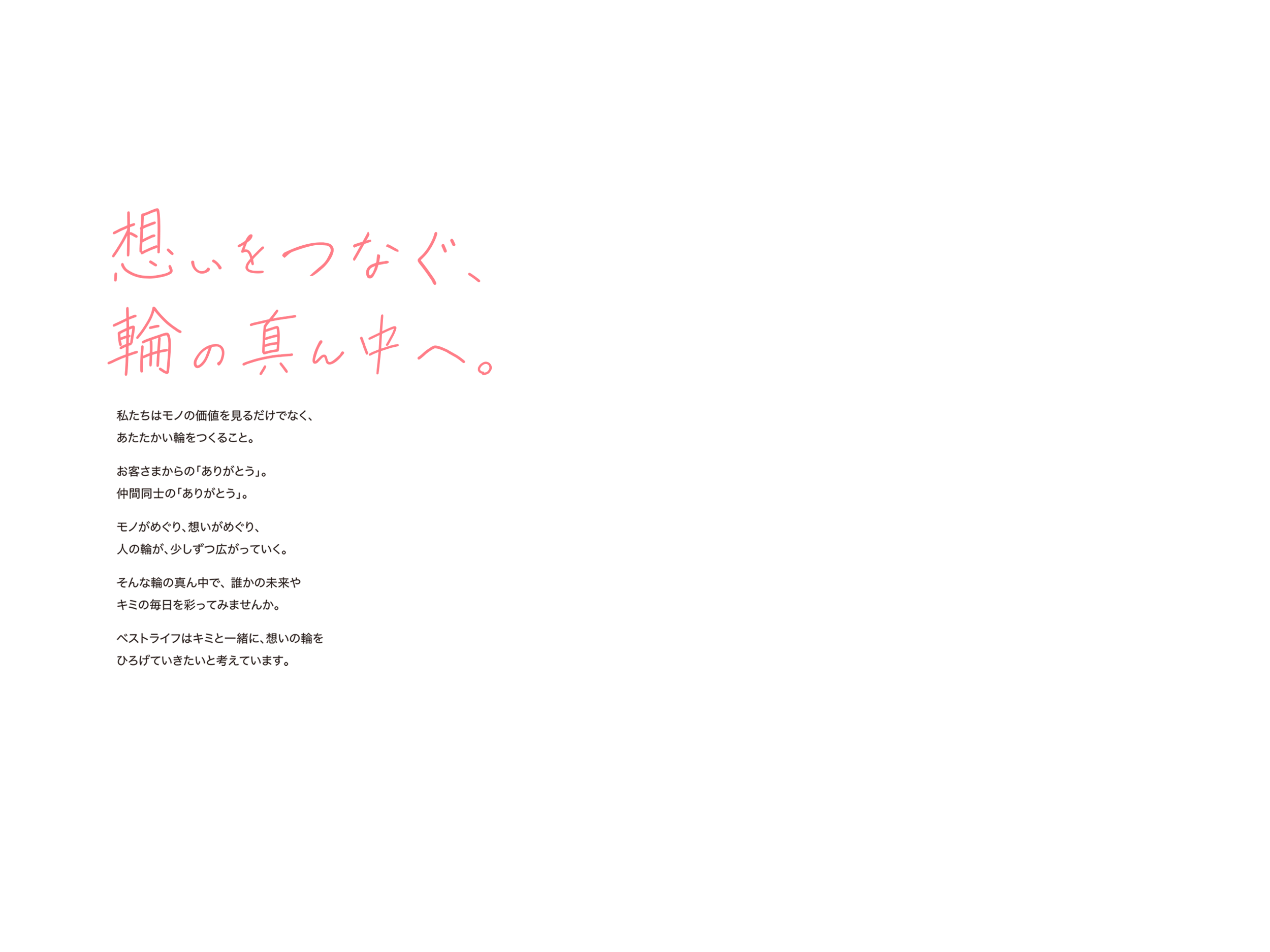 ベストライフの真ん中にあるのは「人」。社員一人ひとりの自己実現が会社全体の成長につながると信じています。